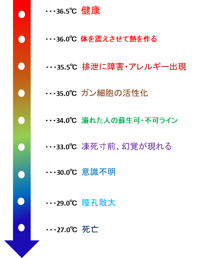 体温が下がるにつれて、人体は様々な影響を受けます。風邪を引きやすくなるなど感染症にかかりやすくなります。がん細胞の活性化はその最たるものの一つです。