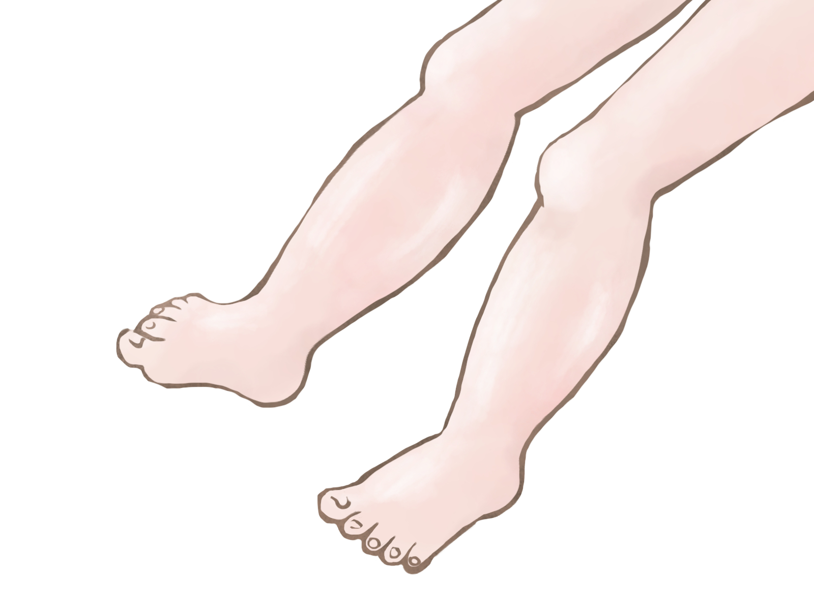 すると、右足は足全体が茶褐色で、まるで象の足のように腫れ、所々於血斑が出ています。指の股はジュクジュクしており、臭い液体が染み出していました。