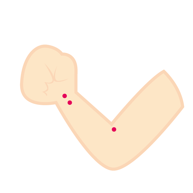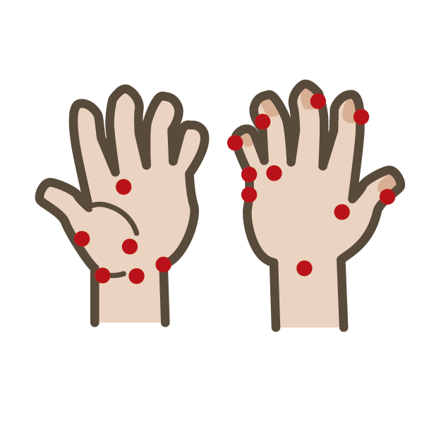 指先にある動静脈吻合部と呼ばれる弁を開いて血流を改善します。また手も足と同じよう肺経、大腸経、心包経、三焦経、心経、小腸経と言う経絡が通っており、爪の生え際に井穴があります。このツボを中心に刺激すると自律神経が整います。