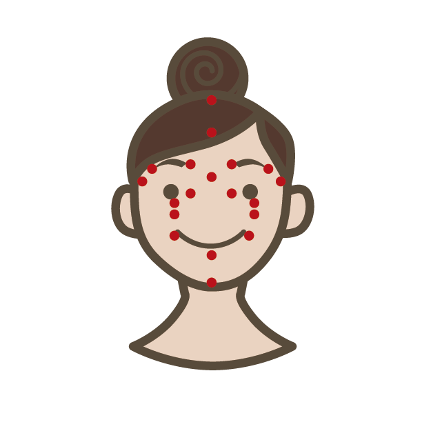 姿勢の悪い方は、顎が突き出て首に負担がかかっています。手の末梢施療後に後頭骨に沿って天柱、風池、完骨と言うツボをリングでほぐします。首回り、首の付け根を施術すると張りが取れて首が良く回るようになります。