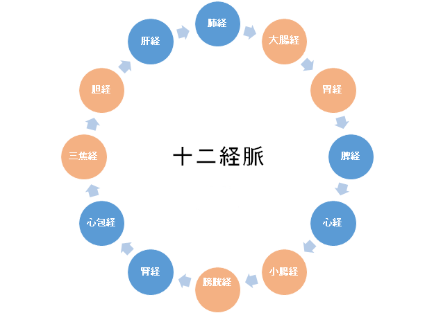 ブルーが陰経で臓に属し、オレンジが陽経で腑に属します。