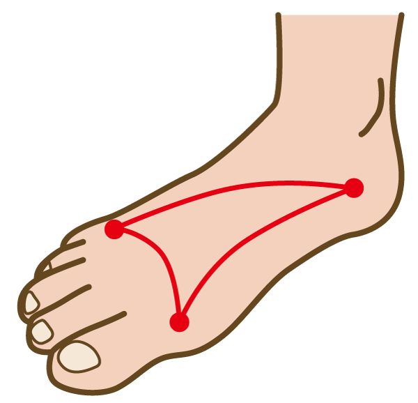 3つのアーチが体重を支え、全身のバランスをとり、地面からの衝撃を吸収してスムーズに歩くことができるのです。