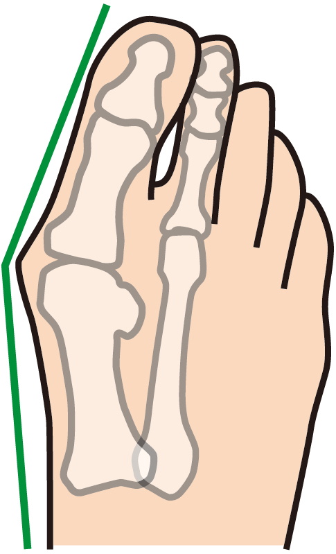 外反母趾や内反小趾は、アーチの崩れからくる開帳足や浮指が原因です。