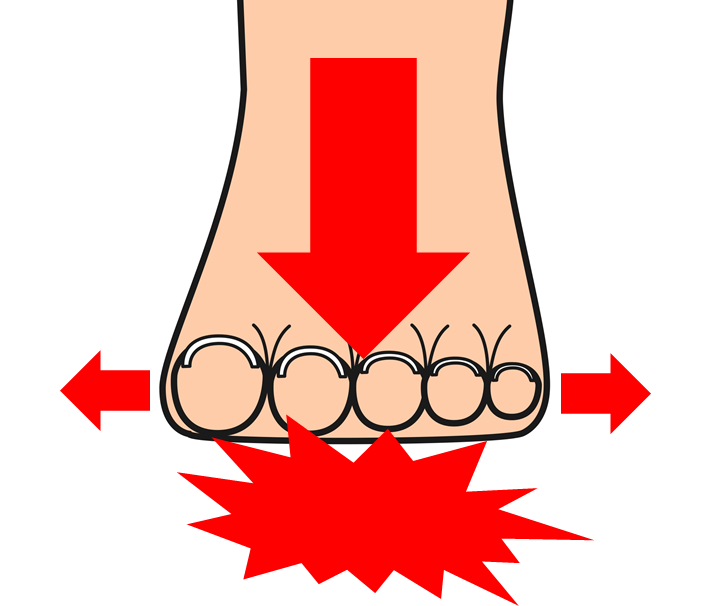 横アーチが崩れて一直線になると全体重が足底にのしかかり、タコや魚の目ができやすくなります。